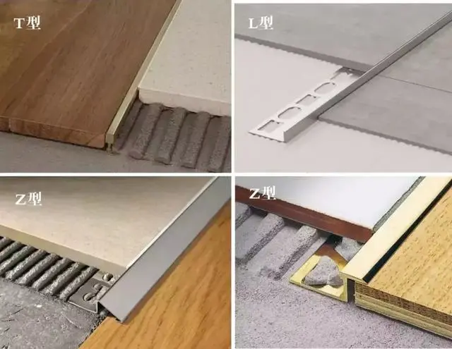 压条现在有了更多的形式,变得更有装饰性,比如说我们常见的地板和地砖对接,就可以再一次进行选择Z型、L型、T型等不同结构的压边条。
